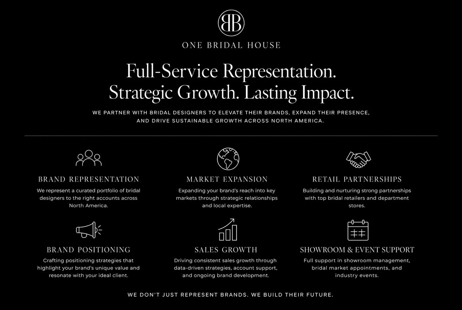 At OBH, we work closely with both emerging and established bridal brands—shaping powerful identities and expanding their presence across North America with precision and purpose.